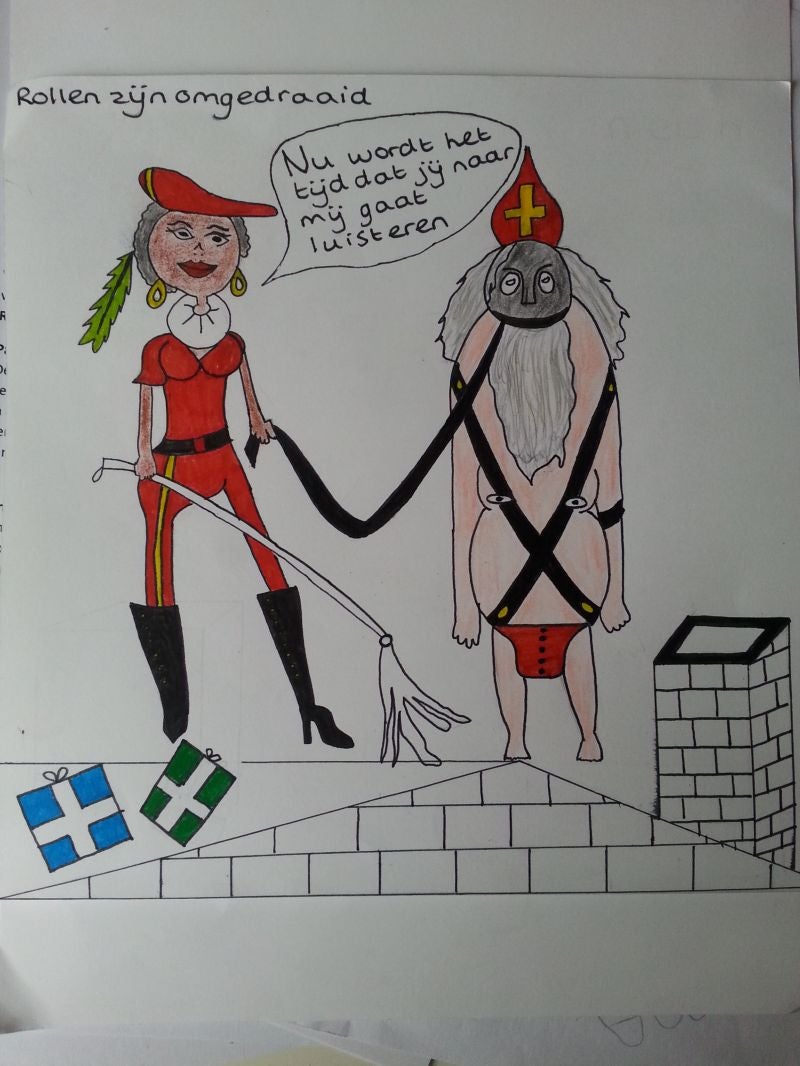 De opdracht een spotprent maken voor CKV maakten we rond de periode van het jaarlijkse Nederlandse feest 'Sinterklaas'. Er was al een tijdje grote discussies rond het Sinterklaasfeest. Over of de zwarte piet nou wel of niet discriminerend is. Daarom heb ik het onderwerp Sinterklaas discussie gekozen voor het maken van een spotprent.